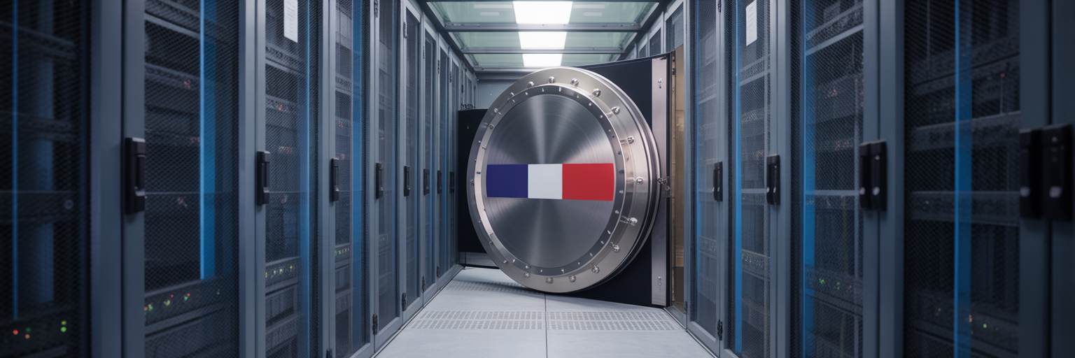 Porte de coffre-fort sécurisée dans un datacenter français.