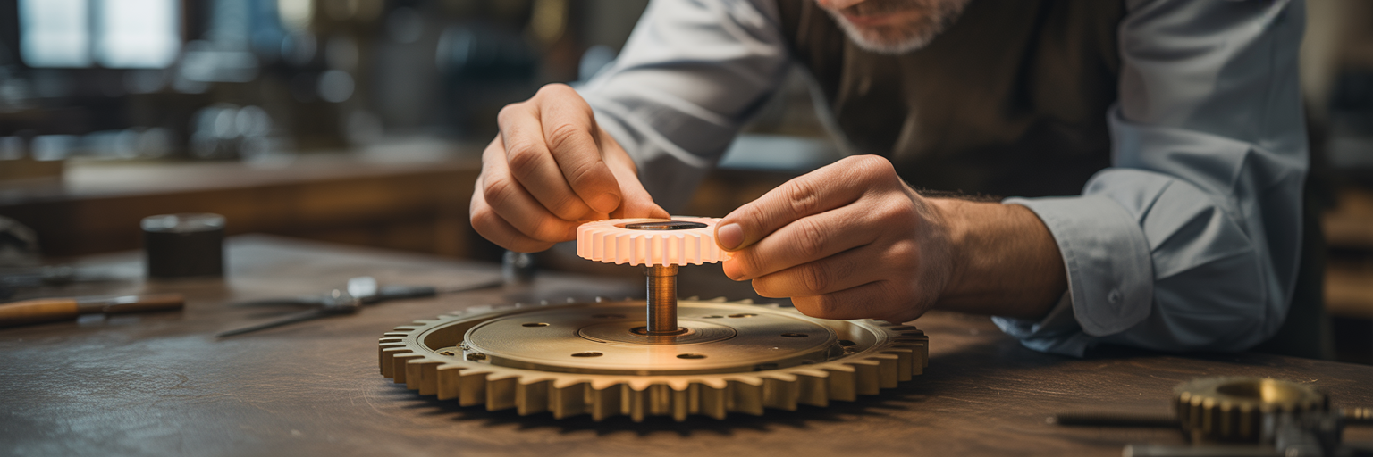 Artisan intégrant une pièce moderne dans un mécanisme.
