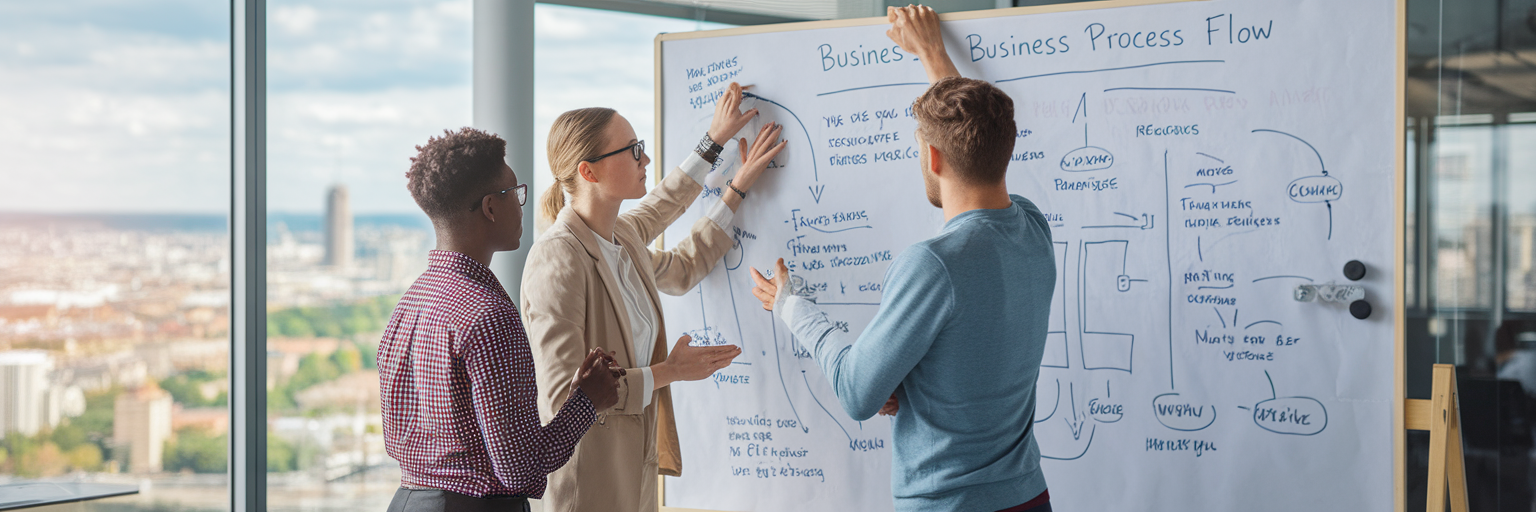 Équipe de PME planifiant une stratégie IA sur un tableau blanc.